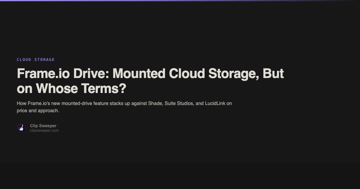 The downside is the pricing model. Frame.io's per-seat-plus-bundled-TB math made sense when people were paying for review and using Dropbox or B2 for archives. Once the drive becomes the main event, the inefficiency of paying for unused seats becomes more visible. A post house with three editors and 30 TB of projects is going to do the math and probably conclude that Suite's $75/TB at five included seats ($375/month for 5 TB, with Frame.io already covered elsewhere) is cleaner, or that Backblaze B2 at $6.95/TB ($208.50/month for 30 TB) plus a separate review tool is cheaper overall.